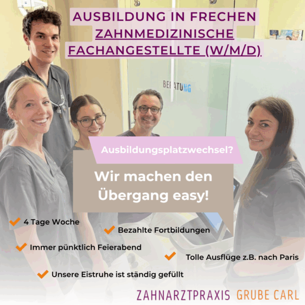 - Du hast eine abgeschlossene ZFA-Ausbildung, bist freundlich, zuverlässig und teamorientiert? Bewirb dich jetzt!