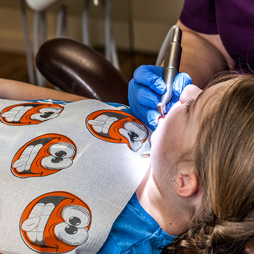 Bevor wir Sie mit einer Kunststofffüllung versorgen, müssen wir die betroffenen Stellen von Karies befreien.