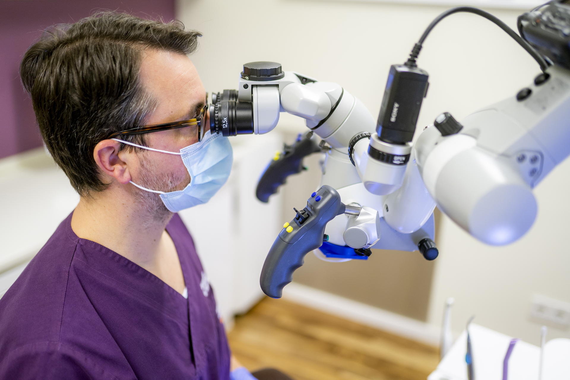 Mit feinen mechanischen Feilen entfernen wir schonend das entzündete Gewebe. Dabei nutzen wir ein Dentalmikroskop, mit dem wir auch die feinen Kanäle erkennen können.