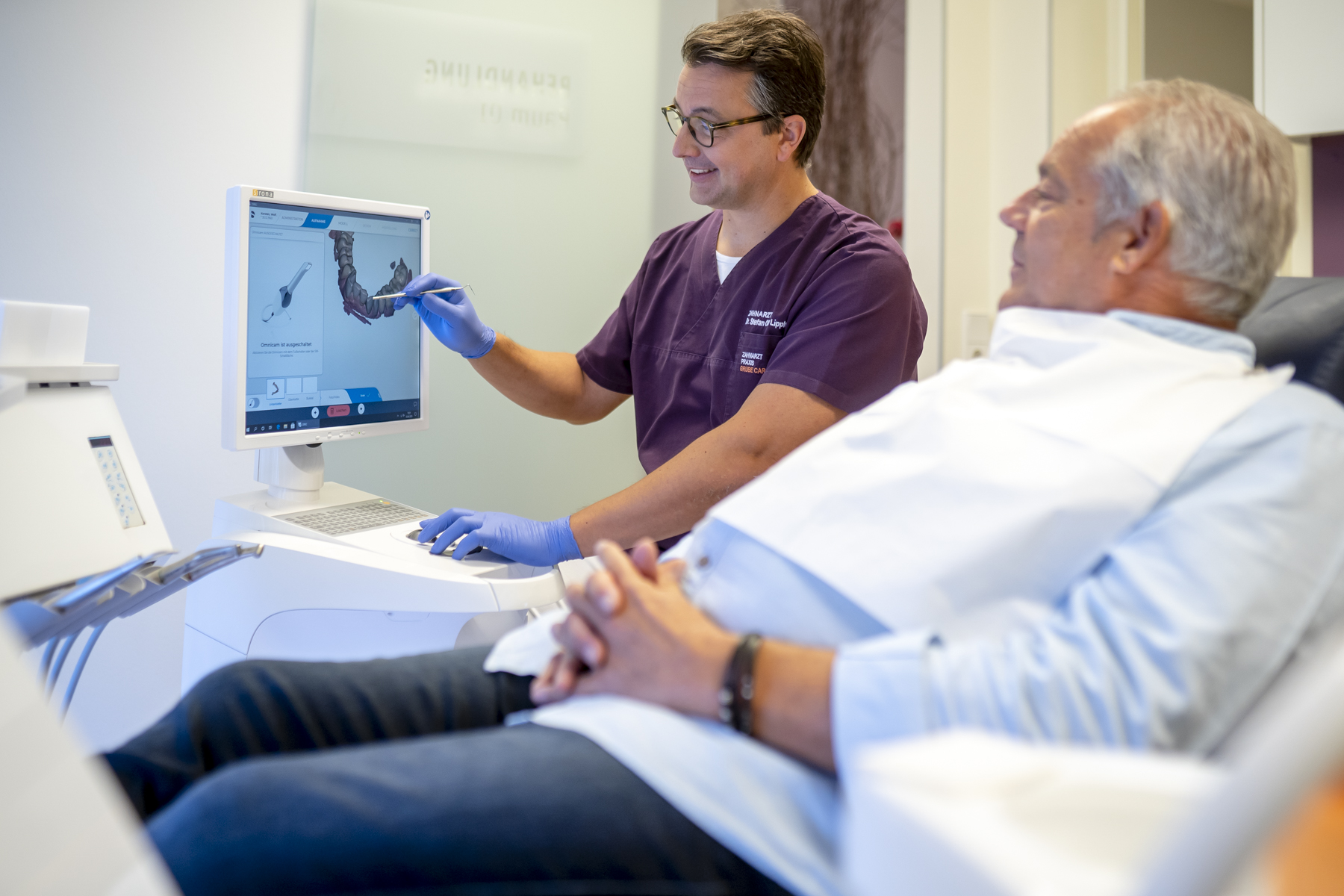 “Wir arbeiten sehr gerne mit dem Digitalen Volumentomographen, weil wir von den Vorteilen überzeugt sind: Die Strahlenbelastung ist geringer als bei herkömmlichen Röntgengeräten, die Aufnahmezeit ist kürzer und die Bilder sind direkt verfügbar.”
